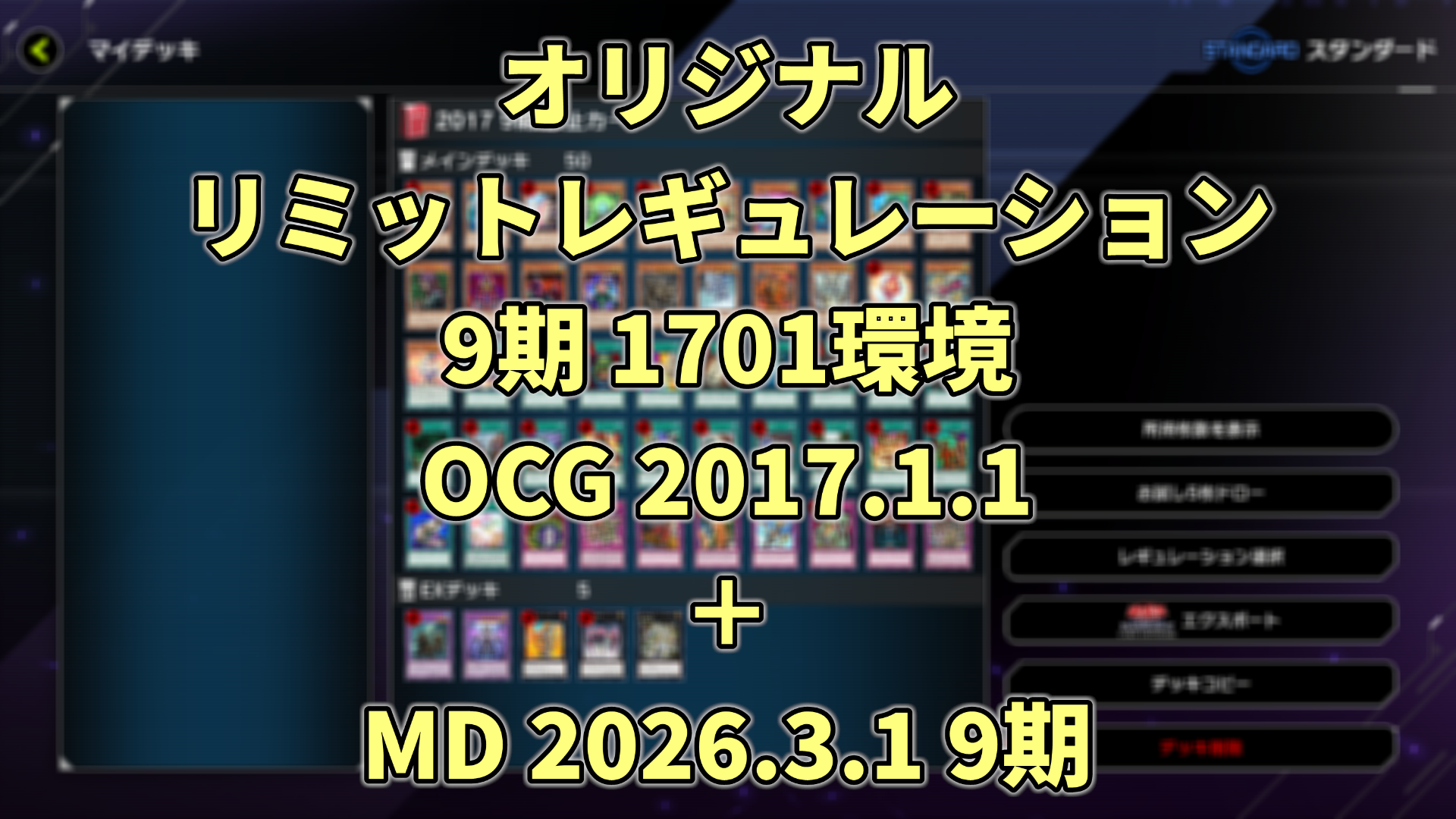 オリジナルリミットレギュレーション 9期 1701環境「遊戯王OCG 2017.1.1 + マスターデュエル 2026.1.8 9期」