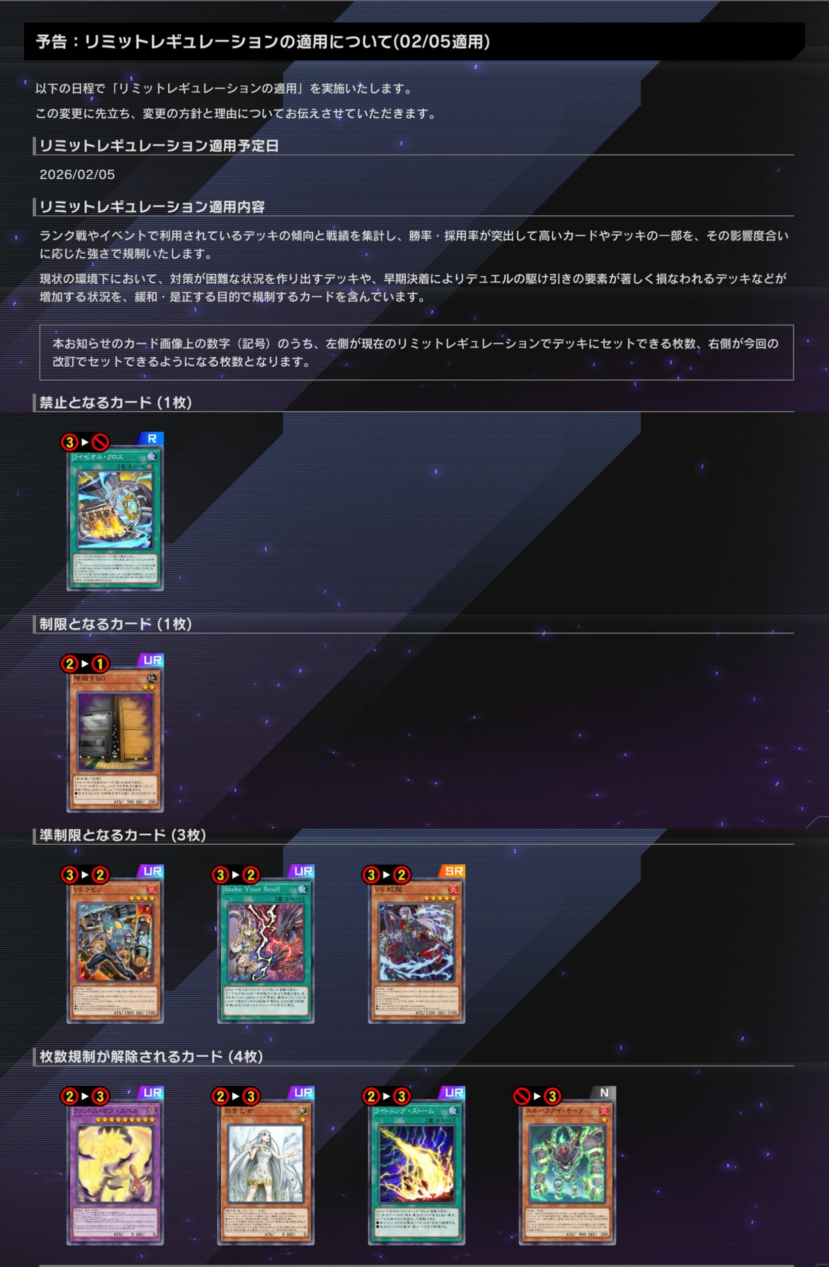 2025.12.5 マスターデュエル リミットレギュレーション 8期 1402環境 から変更されたカード。