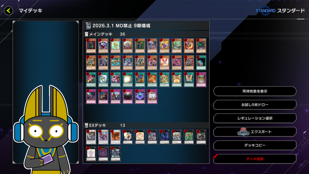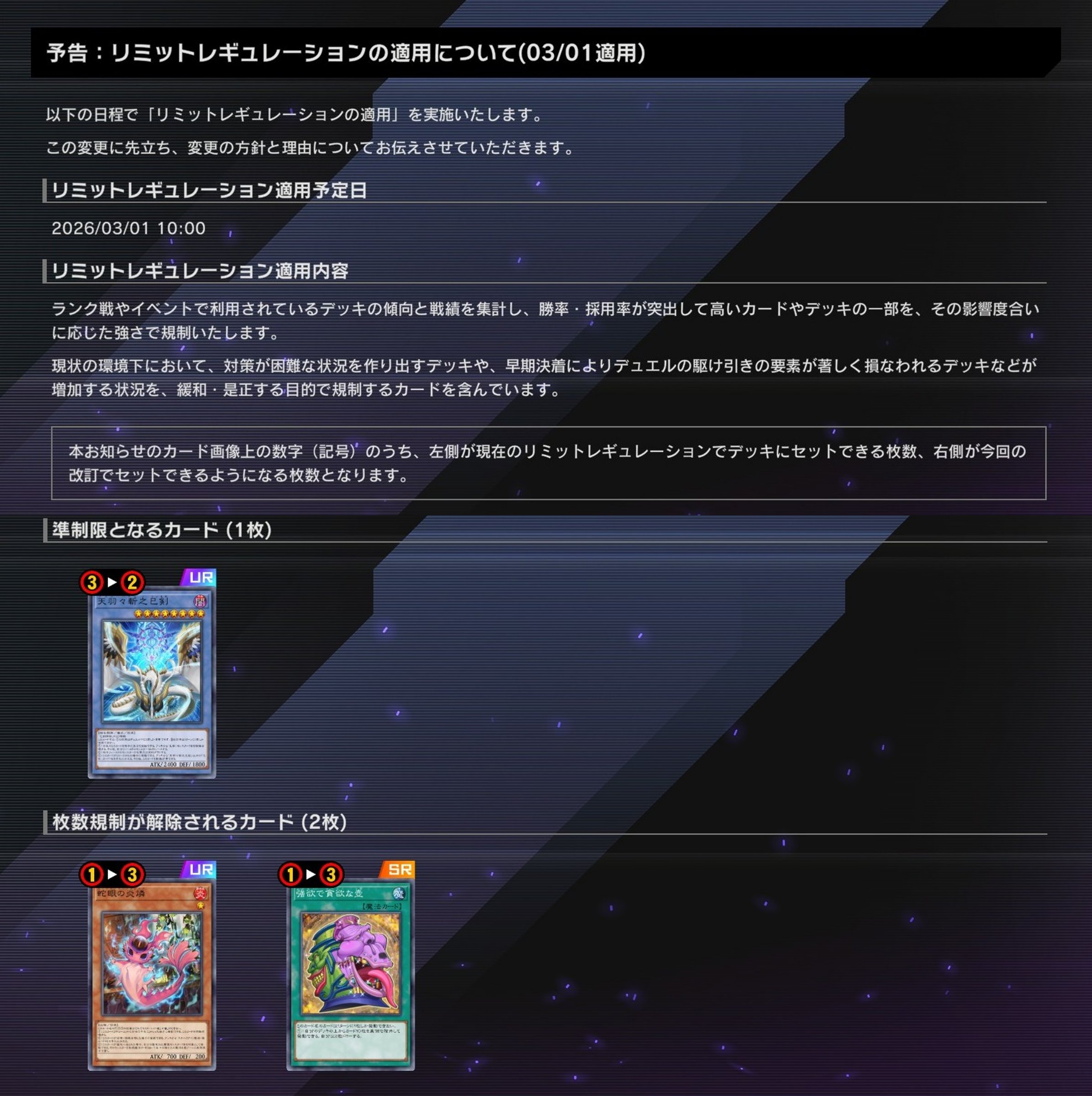 2026.2.5 マスターデュエル リミットレギュレーション 9期 1701環境 から変更されたカード。