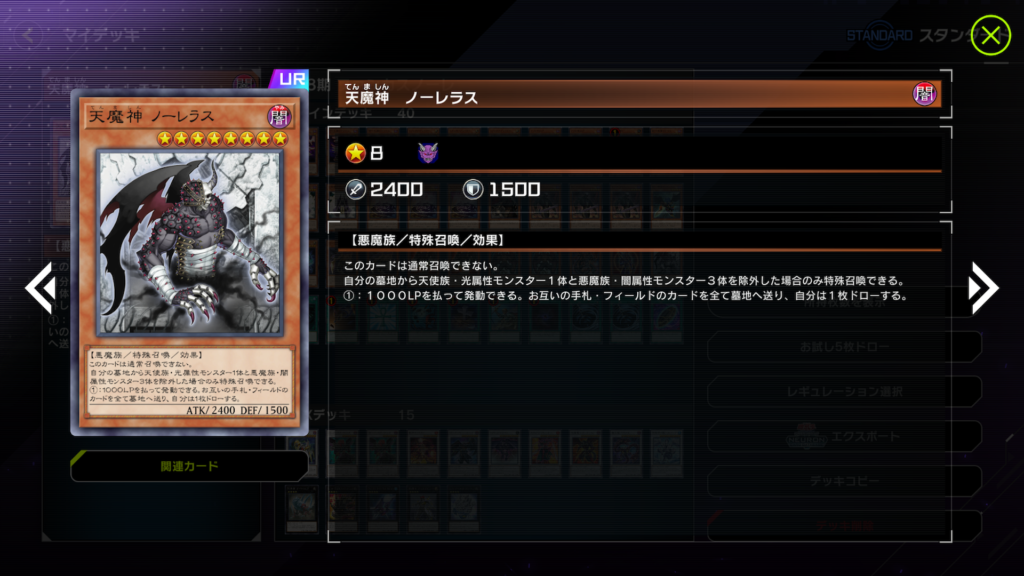 ①:自分はデッキから2枚ドローし、その後手札の闇属性モンスター1体を除外する。手札に闇属性モンスターが無い場合、手札を全て墓地へ送る。