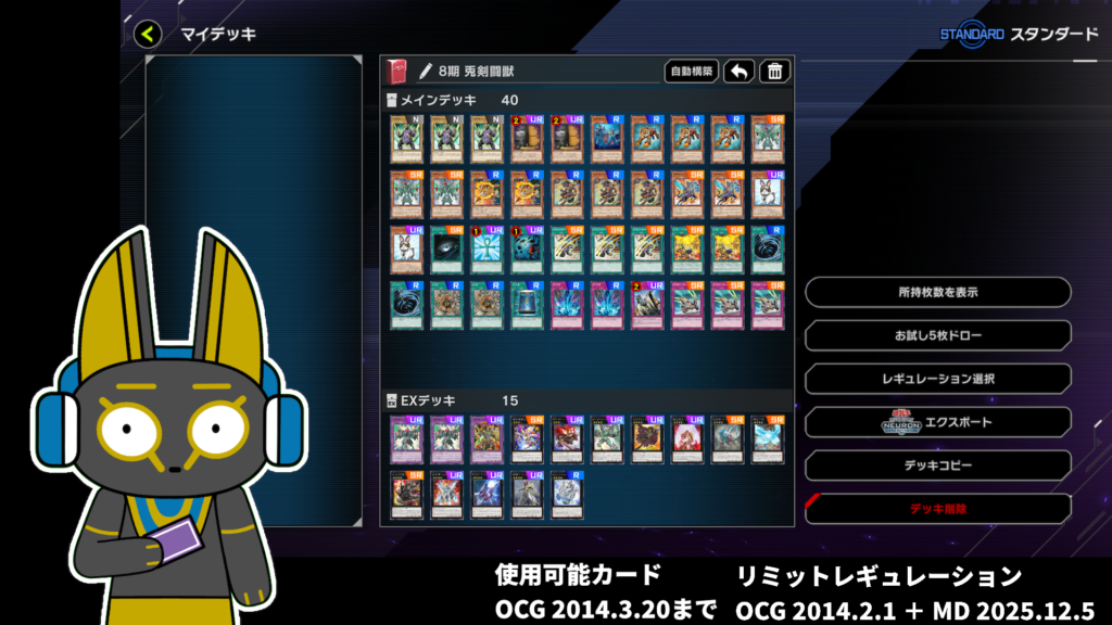 2014年の遊戯王OCGで使用していたカードがマスターデュエル STANDARDで禁止・制限されている場合、マスターデュエルのリミットレギュレーションを適用しています。